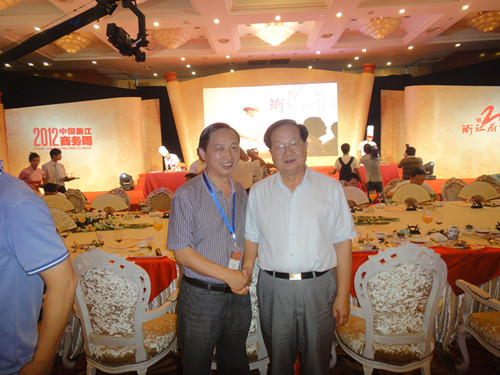 祝賀寧波市江徽美食餐飲有限公司總經(jīng)理江中民先生參加第二屆浙江廚師節(jié)與群英大會(huì)并榮獲“2012浙江餐飲業(yè)金鼎杯風(fēng)云人物”,與會(huì)期間,江中民總經(jīng)理受到了浙江省省長夏寶龍的接見,并與中國烹飪協(xié)會(huì)常務(wù)副會(huì)長兼秘書長馮恩援及浙江省企業(yè)家協(xié)會(huì)會(huì)長張蔚文等領(lǐng)導(dǎo)進(jìn)行了親切的交談。