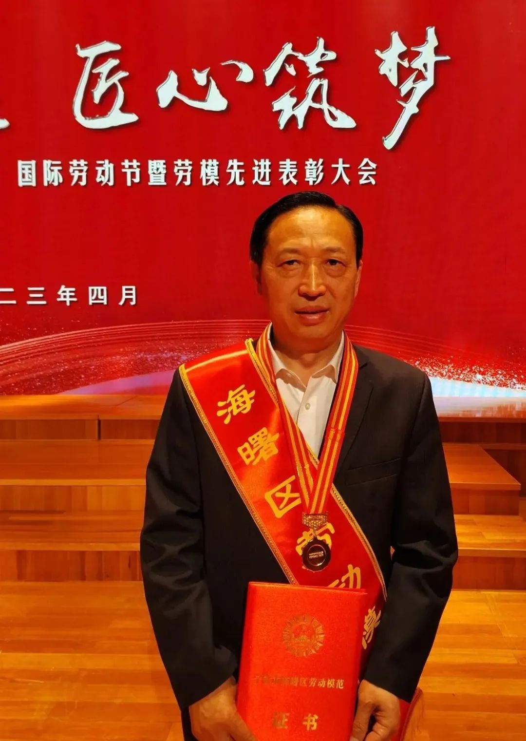 勞動創(chuàng)造幸福,實(shí)干成就偉業(yè)。2023年4月26日,海曙區(qū)慶祝五一國際勞動節(jié)暨勞模先進(jìn)表彰大會在寧波音樂廳舉行。江徽公司總經(jīng)理江中民榮獲“海曙區(qū)勞動模范”光榮稱號;江徽公司執(zhí)行總經(jīng)理段輝良榮獲“海曙工匠”光榮稱號。